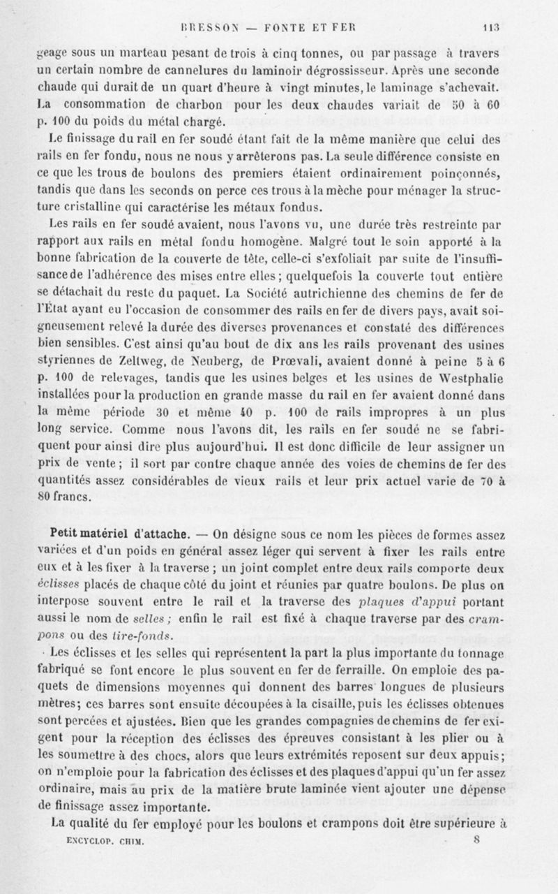 Encyclopédie chimique.Tome V.- Applications de la chimie inorganique. 2eme section : industries chimiques. 2e partie : métallurgie. Fonte et fer, par M. G. Bresson.