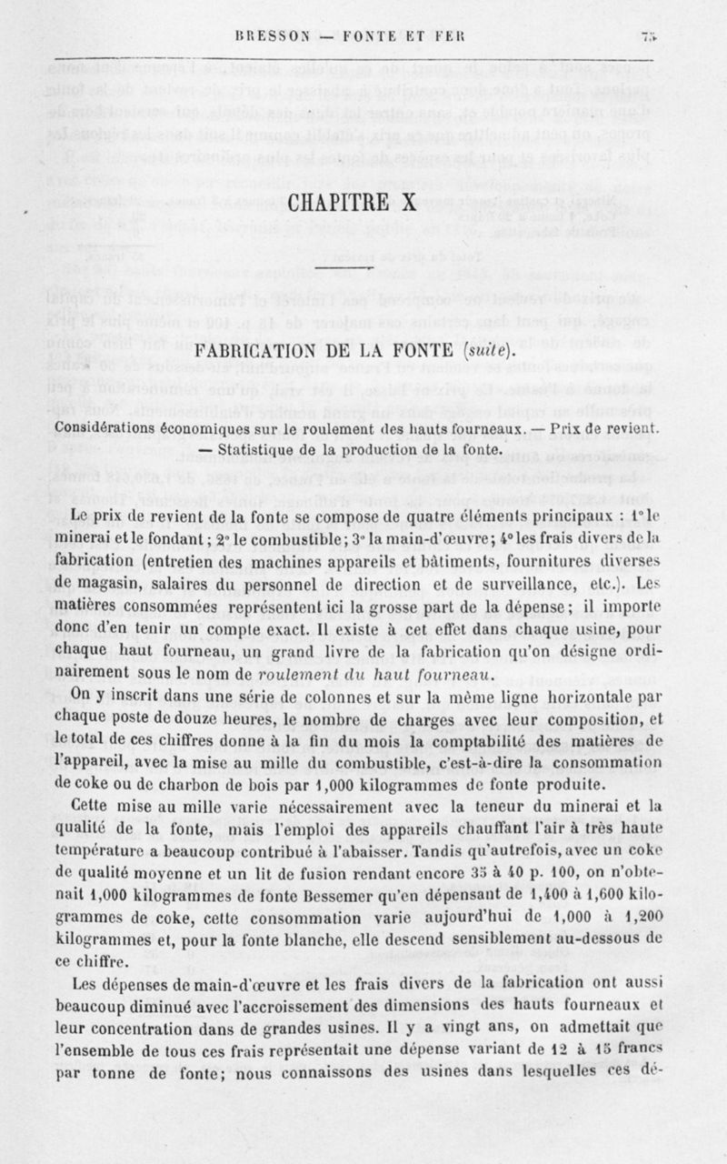 Encyclopédie chimique.Tome V.- Applications de la chimie inorganique. 2eme section : industries chimiques. 2e partie : métallurgie. Fonte et fer, par M. G. Bresson.