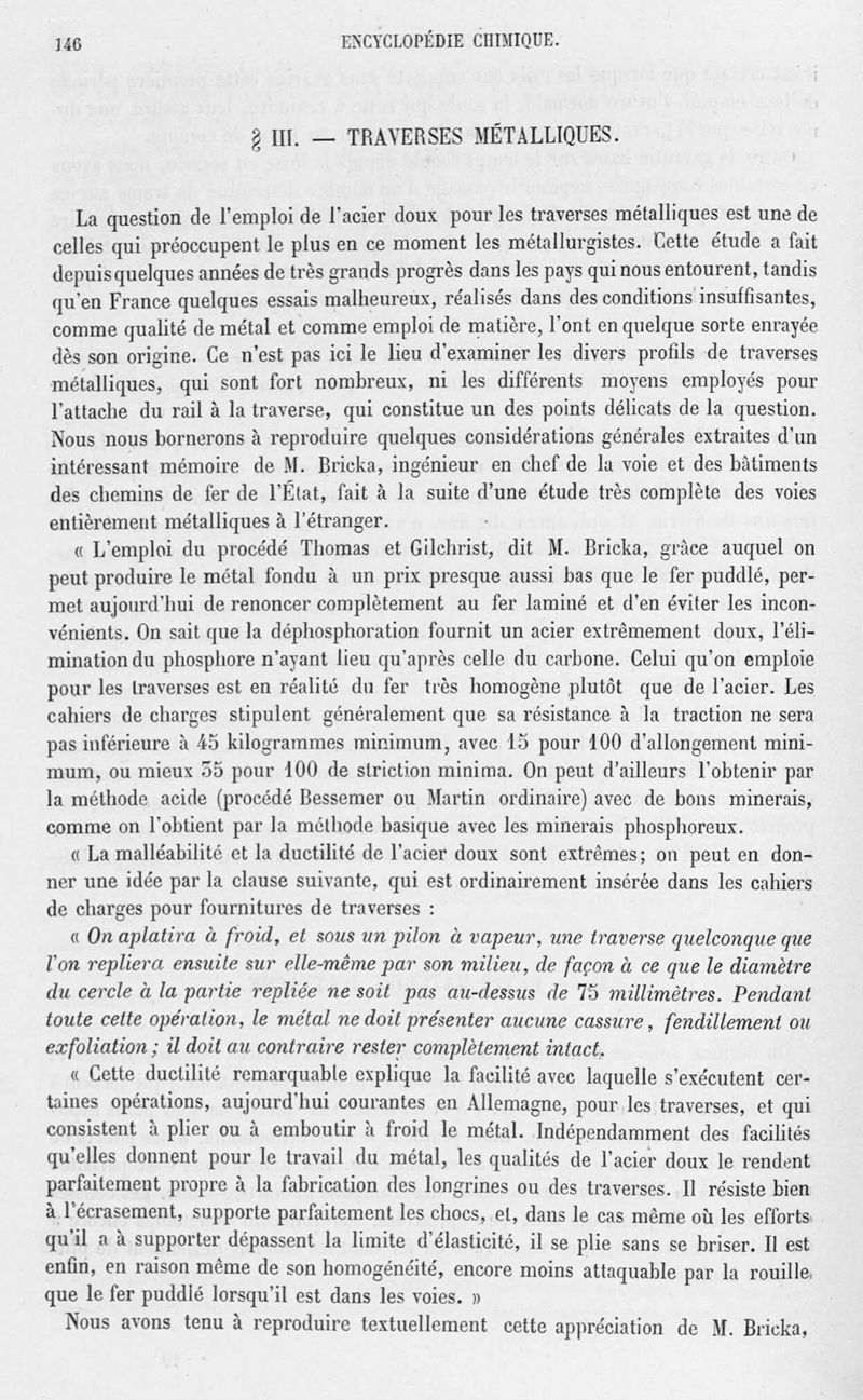 Encyclopédie chimique.Tome V.- Applications de la chimie inorganique. 2eme section : industries chimiques. 2e partie : métallurgie. Aciers, par M. G. Bresson.