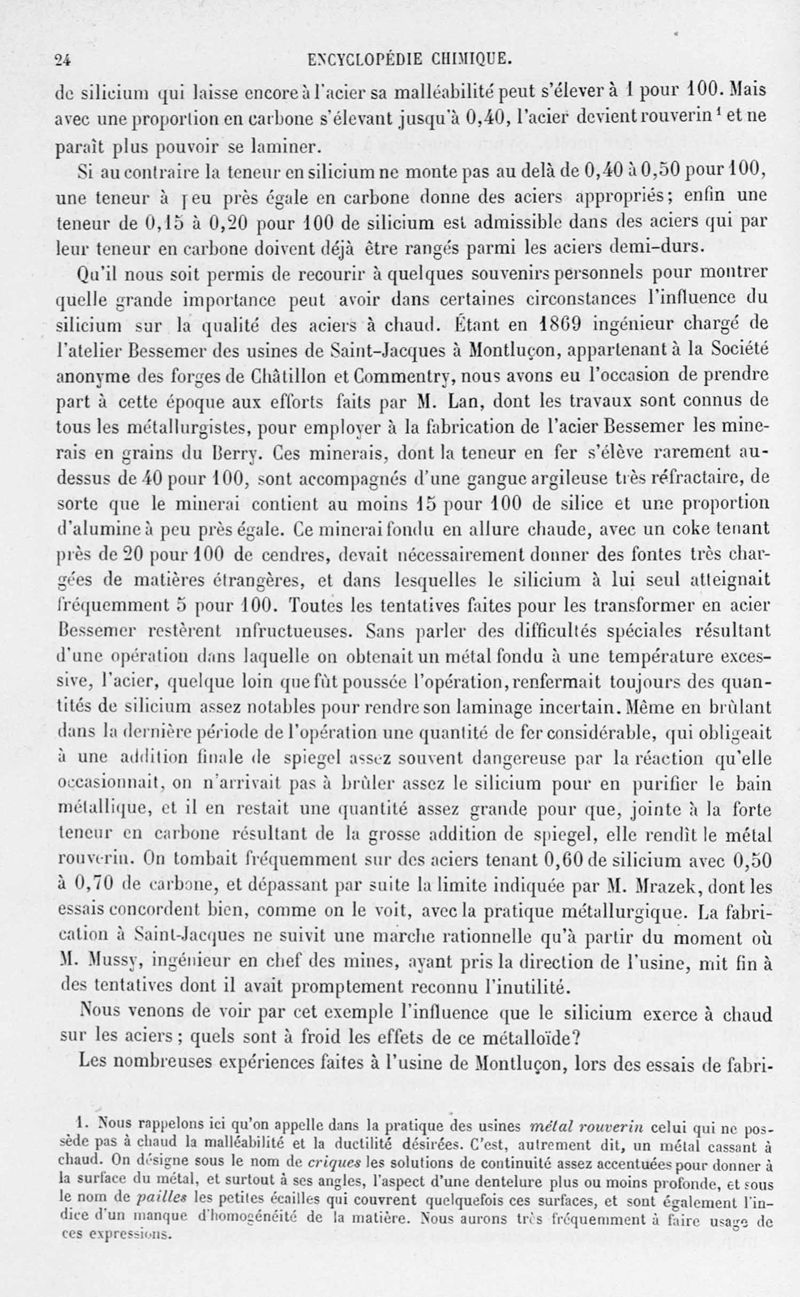 Encyclopédie chimique.Tome V.- Applications de la chimie inorganique. 2eme section : industries chimiques. 2e partie : métallurgie. Aciers, par M. G. Bresson.