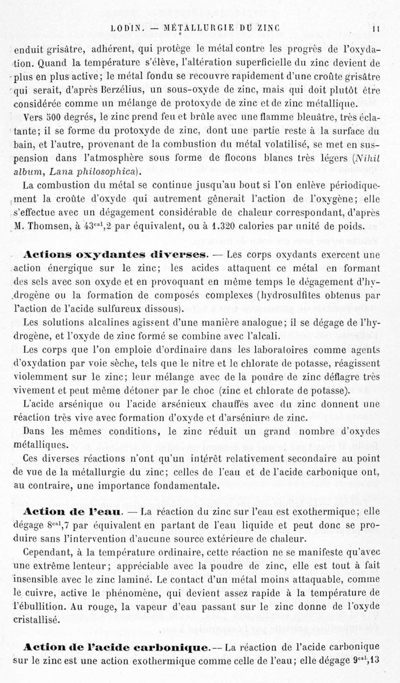 Encyclopédie chimique.Tome V.- Applications de la chimie inorganique. 2eme section : industries chimiques. 2e partie : métallurgie. Métallurgie du zinc, par M. A. Lodin.