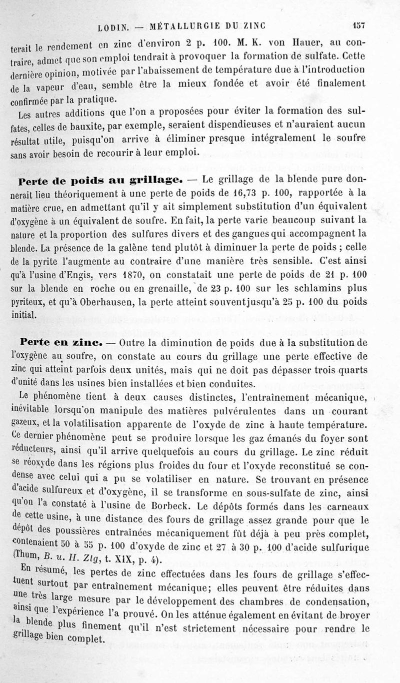 Encyclopédie chimique.Tome V.- Applications de la chimie inorganique. 2eme section : industries chimiques. 2e partie : métallurgie. Métallurgie du zinc, par M. A. Lodin.