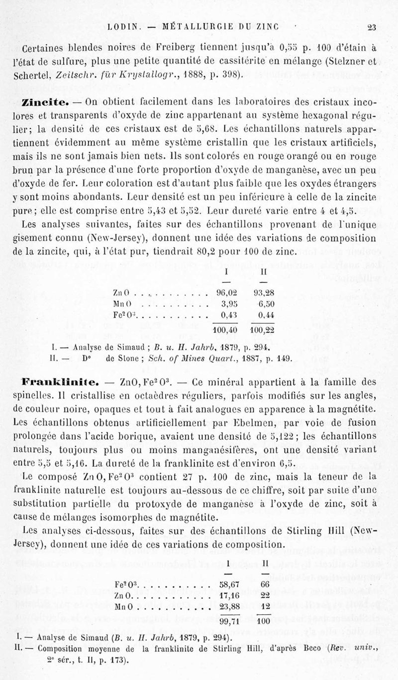 Encyclopédie chimique.Tome V.- Applications de la chimie inorganique. 2eme section : industries chimiques. 2e partie : métallurgie. Métallurgie du zinc, par M. A. Lodin.