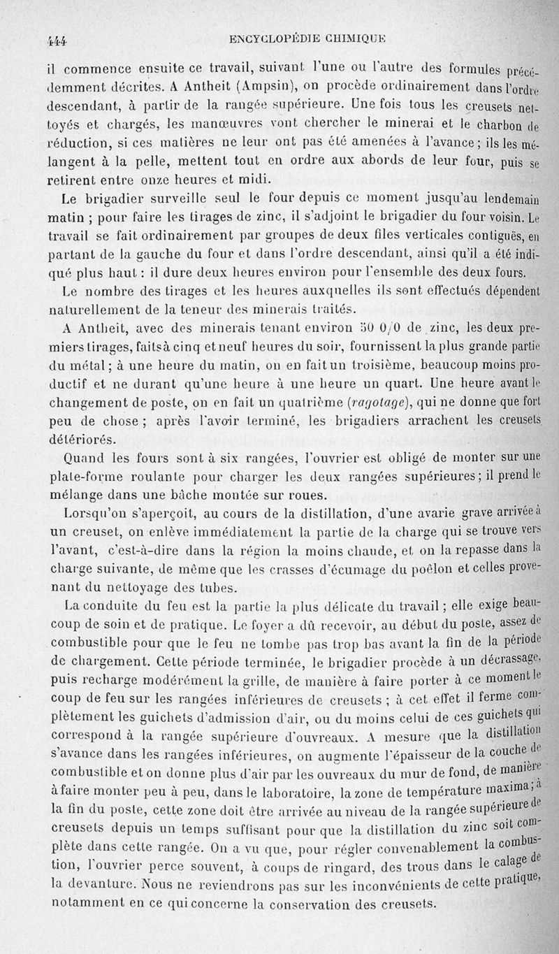 Encyclopédie chimique.Tome V.- Applications de la chimie inorganique. 2eme section : industries chimiques. 2e partie : métallurgie. Métallurgie du zinc, par M. A. Lodin.