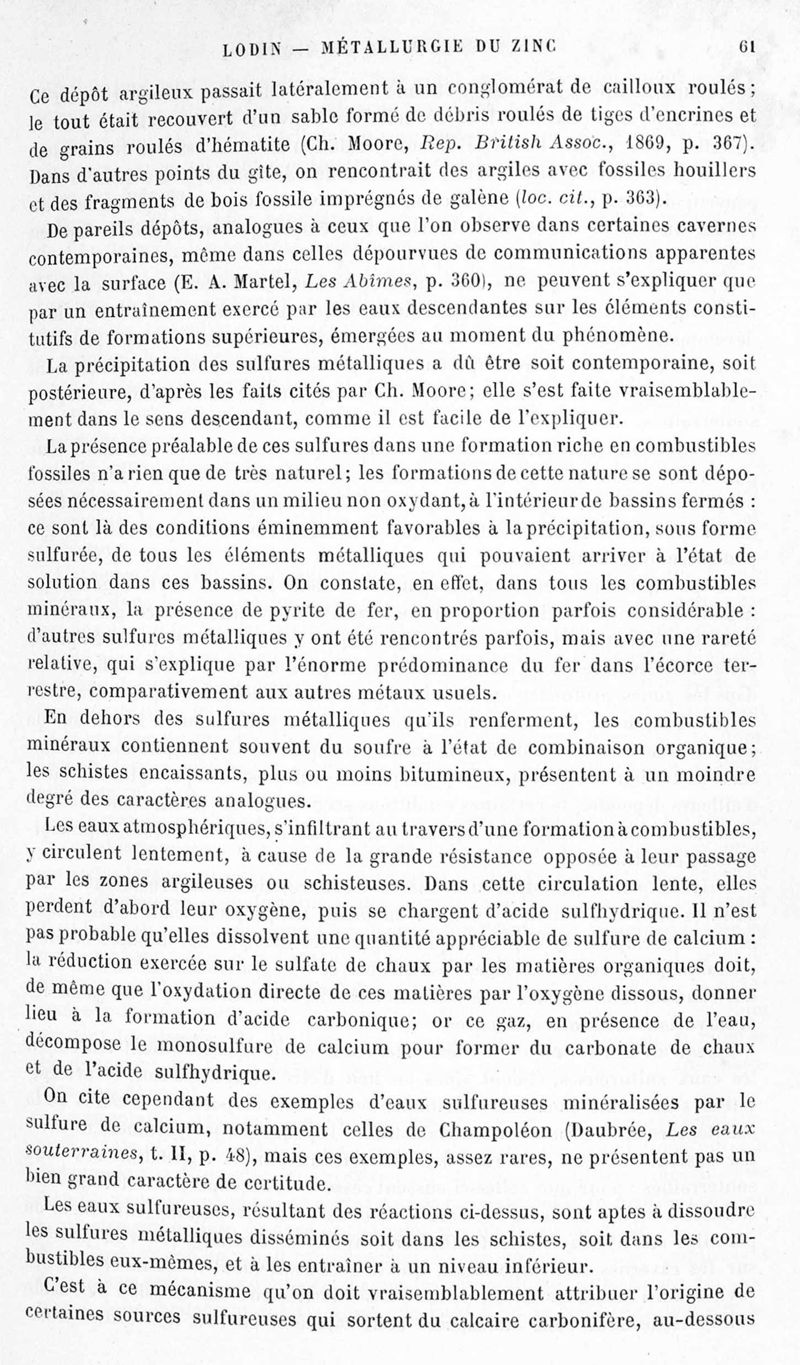 Encyclopédie chimique.Tome V.- Applications de la chimie inorganique. 2eme section : industries chimiques. 2e partie : métallurgie. Métallurgie du zinc, par M. A. Lodin.