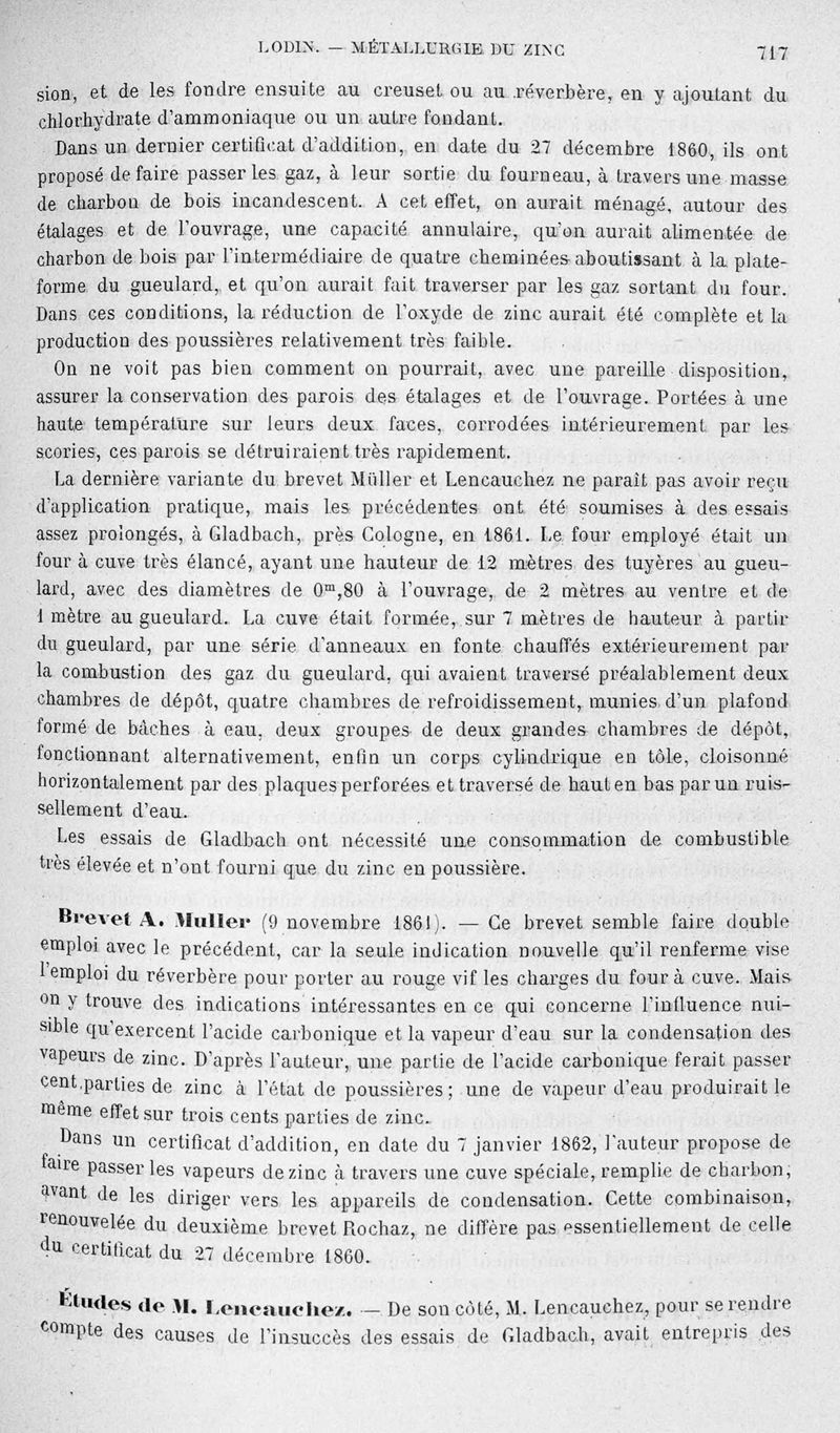 Encyclopédie chimique.Tome V.- Applications de la chimie inorganique. 2eme section : industries chimiques. 2e partie : métallurgie. Métallurgie du zinc, par M. A. Lodin.