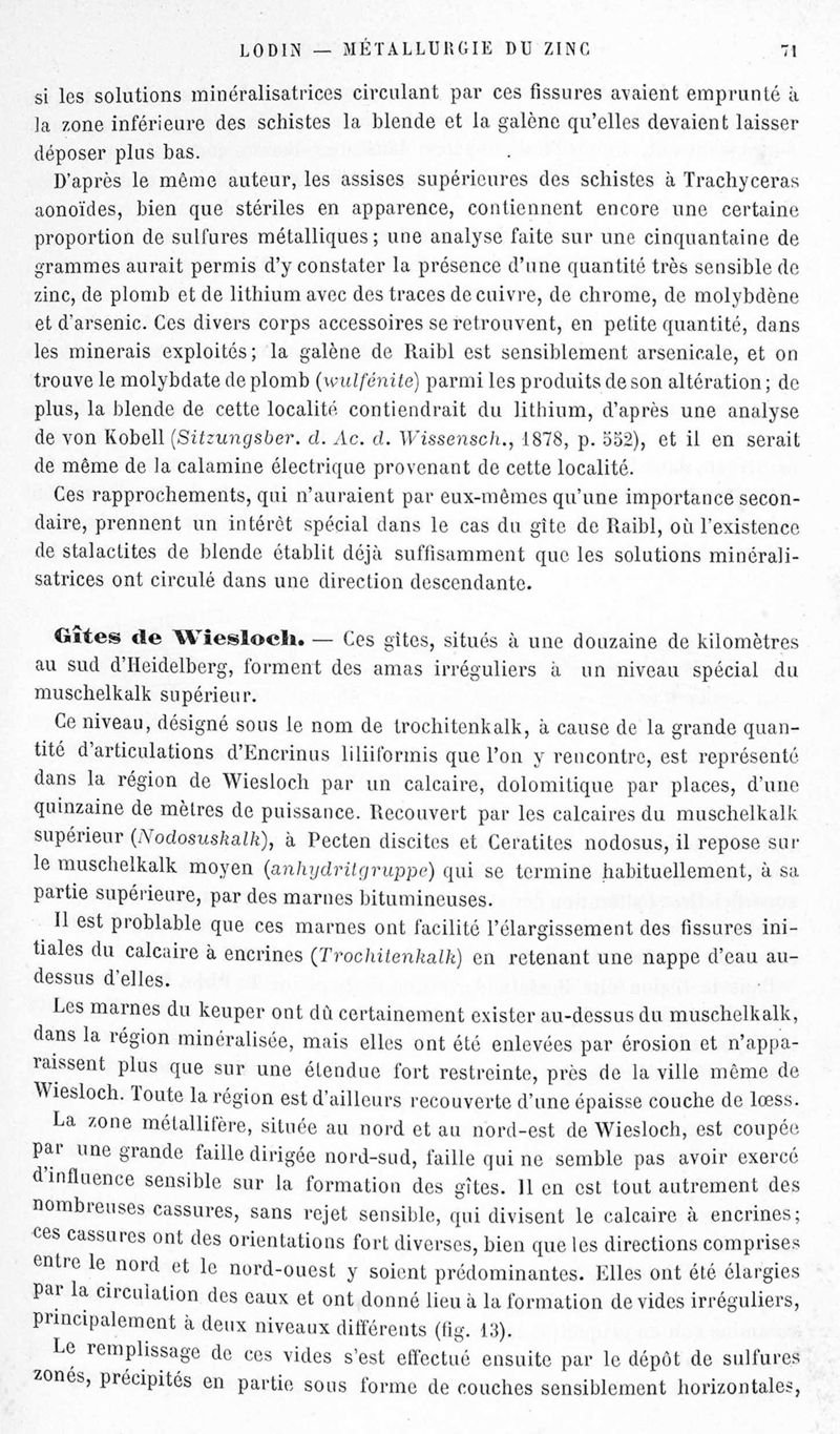 Encyclopédie chimique.Tome V.- Applications de la chimie inorganique. 2eme section : industries chimiques. 2e partie : métallurgie. Métallurgie du zinc, par M. A. Lodin.
