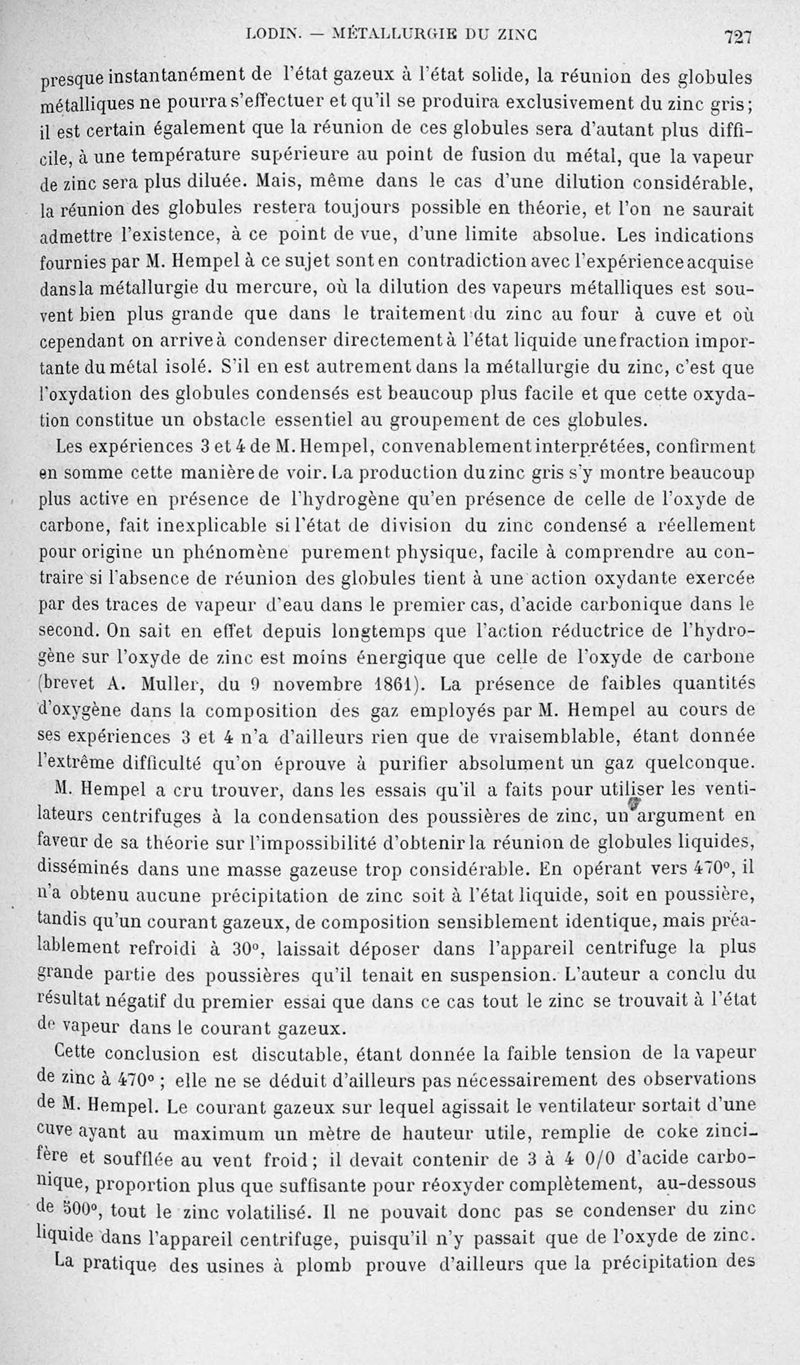 Encyclopédie chimique.Tome V.- Applications de la chimie inorganique. 2eme section : industries chimiques. 2e partie : métallurgie. Métallurgie du zinc, par M. A. Lodin.