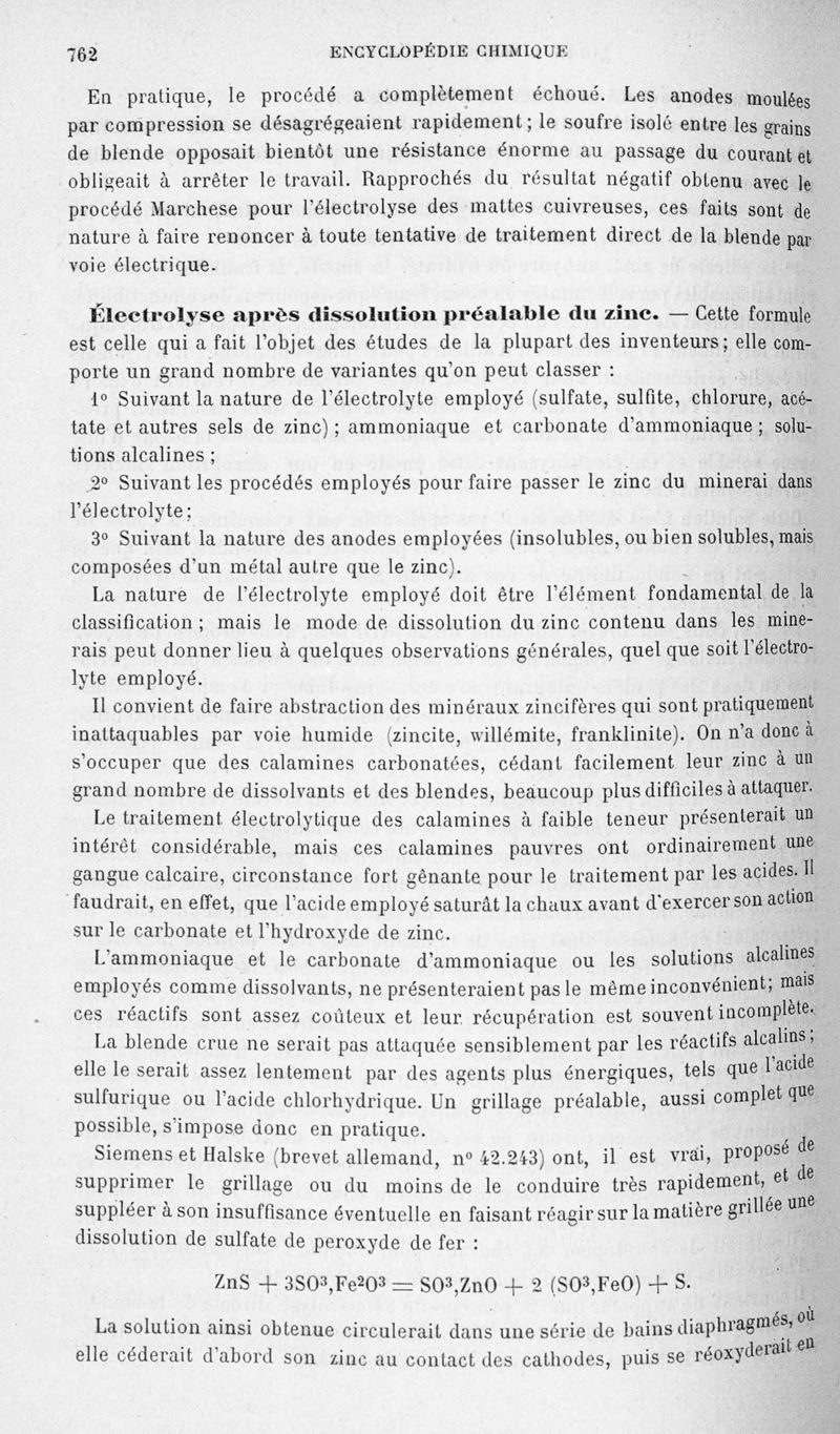 Encyclopédie chimique.Tome V.- Applications de la chimie inorganique. 2eme section : industries chimiques. 2e partie : métallurgie. Métallurgie du zinc, par M. A. Lodin.
