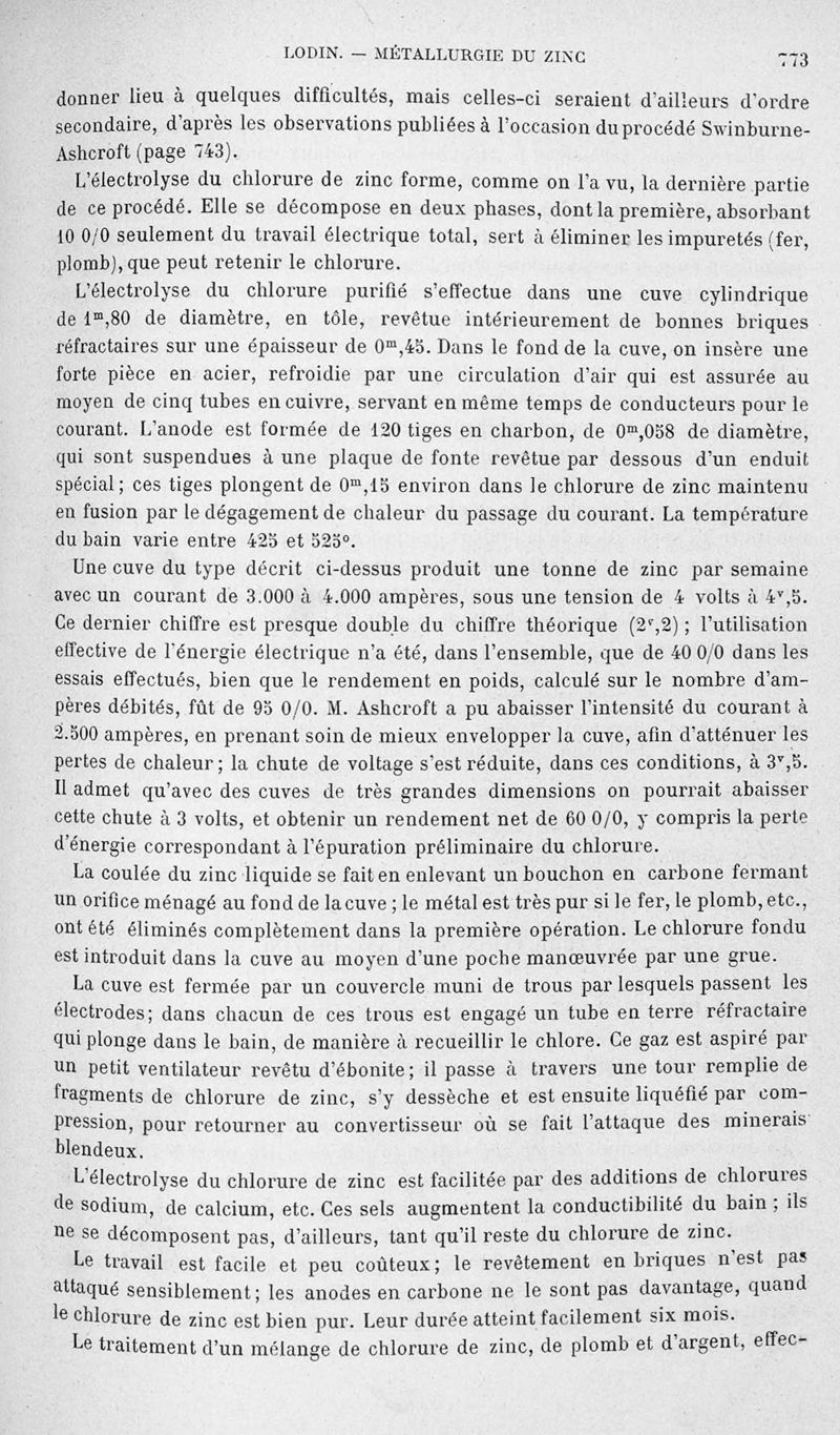 Encyclopédie chimique.Tome V.- Applications de la chimie inorganique. 2eme section : industries chimiques. 2e partie : métallurgie. Métallurgie du zinc, par M. A. Lodin.