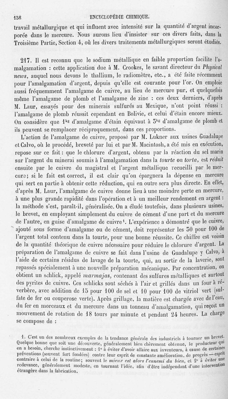 Encyclopédie chimique.Tome V.- Applications de la chimie inorganique. 2eme section : industries chimiques. 2e partie : métallurgie. Métallurgie de l'argent, par M. C. Roswag.