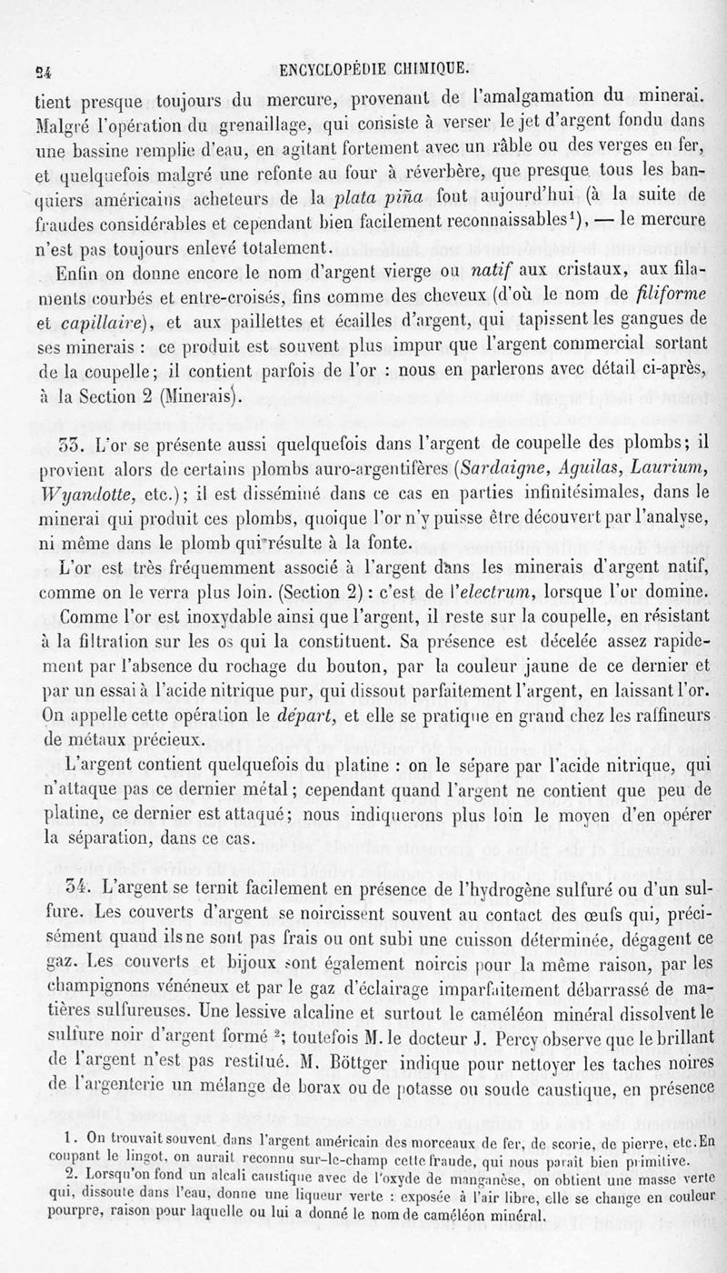 Encyclopédie chimique.Tome V.- Applications de la chimie inorganique. 2eme section : industries chimiques. 2e partie : métallurgie. Métallurgie de l'argent, par M. C. Roswag.