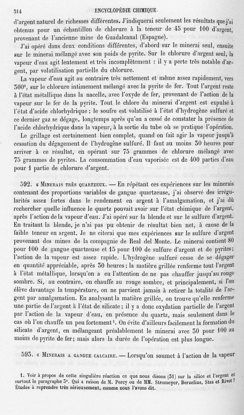 Encyclopédie chimique.Tome V.- Applications de la chimie inorganique. 2eme section : industries chimiques. 2e partie : métallurgie. Métallurgie de l'argent, par M. C. Roswag.