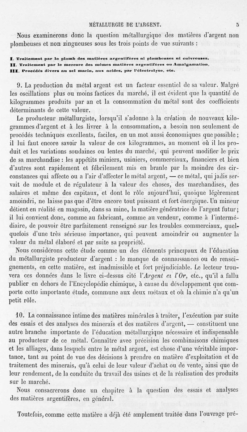 Encyclopédie chimique.Tome V.- Applications de la chimie inorganique. 2eme section : industries chimiques. 2e partie : métallurgie. Métallurgie de l'argent, par M. C. Roswag.