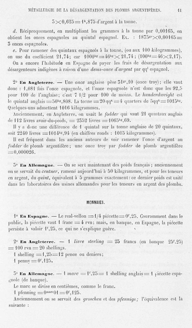 Encyclopédie chimique.Tome V.- Applications de la chimie inorganique. 2eme section : industries chimiques. 2e partie : métallurgie. Désargentation des minerais de plomb, par M. C. Roswag.