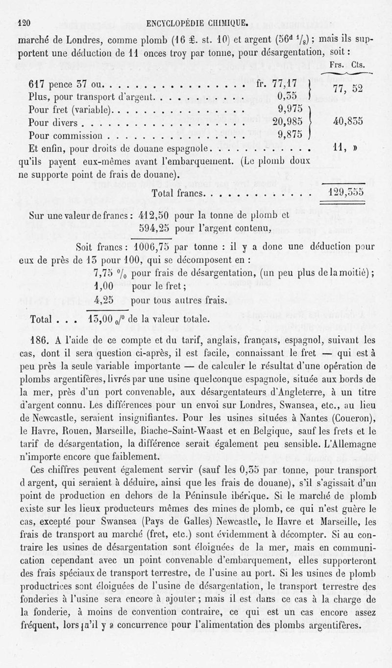 Encyclopédie chimique.Tome V.- Applications de la chimie inorganique. 2eme section : industries chimiques. 2e partie : métallurgie. Désargentation des minerais de plomb, par M. C. Roswag.