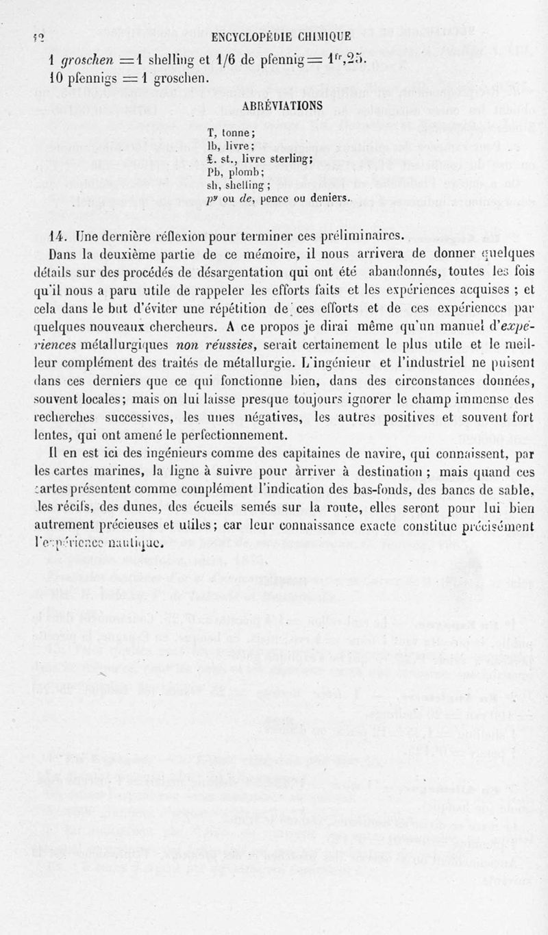 Encyclopédie chimique.Tome V.- Applications de la chimie inorganique. 2eme section : industries chimiques. 2e partie : métallurgie. Désargentation des minerais de plomb, par M. C. Roswag.