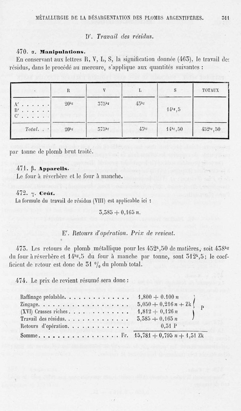 Encyclopédie chimique.Tome V.- Applications de la chimie inorganique. 2eme section : industries chimiques. 2e partie : métallurgie. Désargentation des minerais de plomb, par M. C. Roswag.
