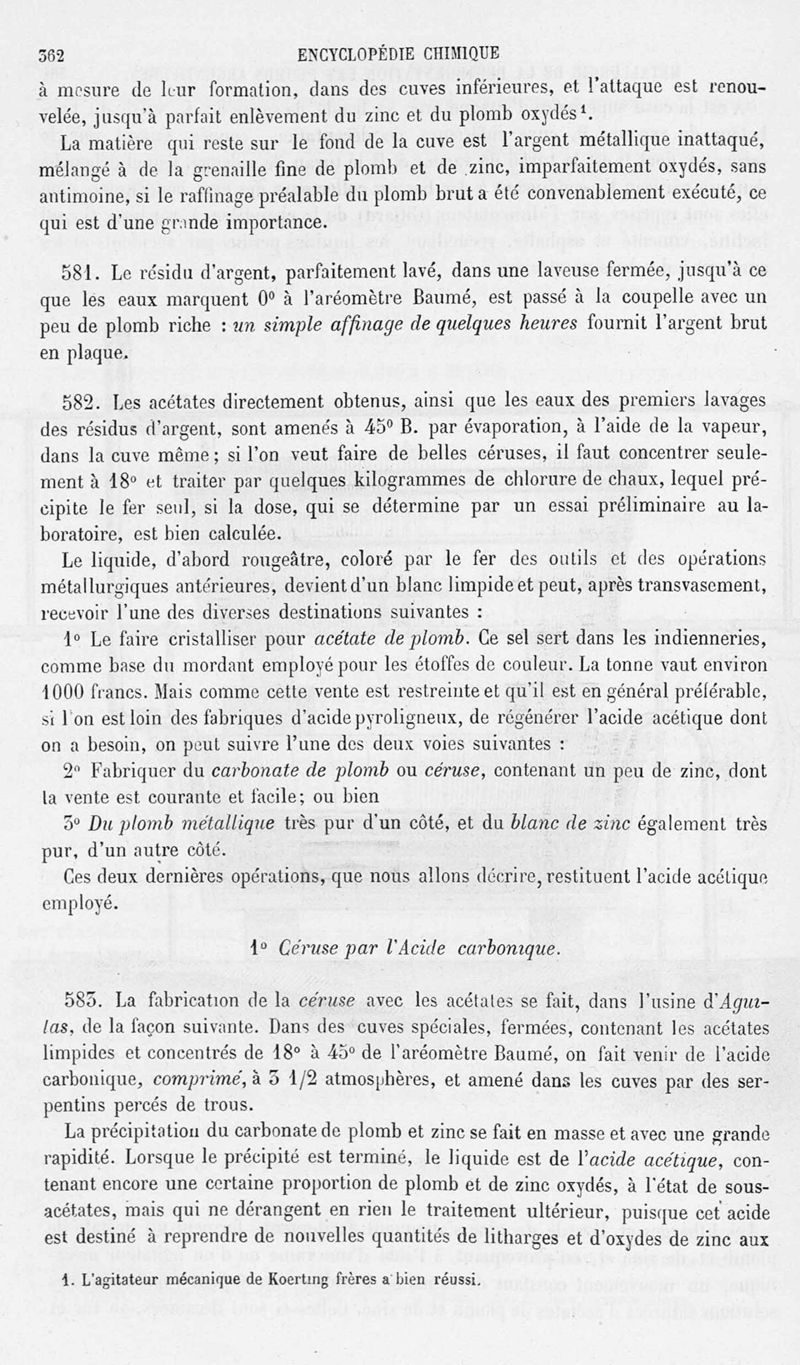 Encyclopédie chimique.Tome V.- Applications de la chimie inorganique. 2eme section : industries chimiques. 2e partie : métallurgie. Désargentation des minerais de plomb, par M. C. Roswag.