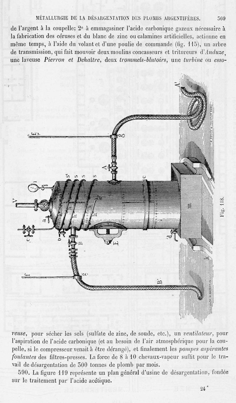 Encyclopédie chimique.Tome V.- Applications de la chimie inorganique. 2eme section : industries chimiques. 2e partie : métallurgie. Désargentation des minerais de plomb, par M. C. Roswag.
