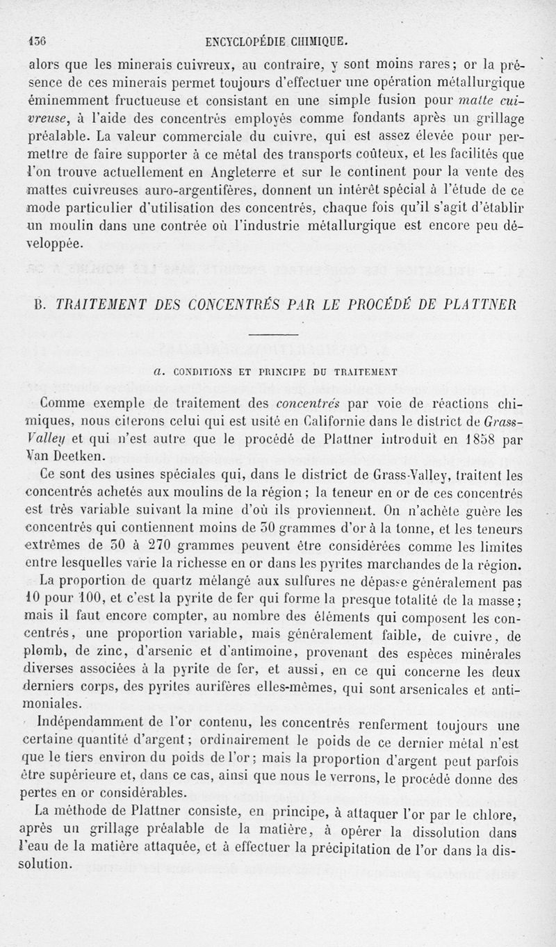 Encyclopédie chimique.Tome V.- Applications de la chimie inorganique. 2eme section : industries chimiques. 2e partie : métallurgie. L'or, par MM. E. Cumenge et Edmond Fuchs.
