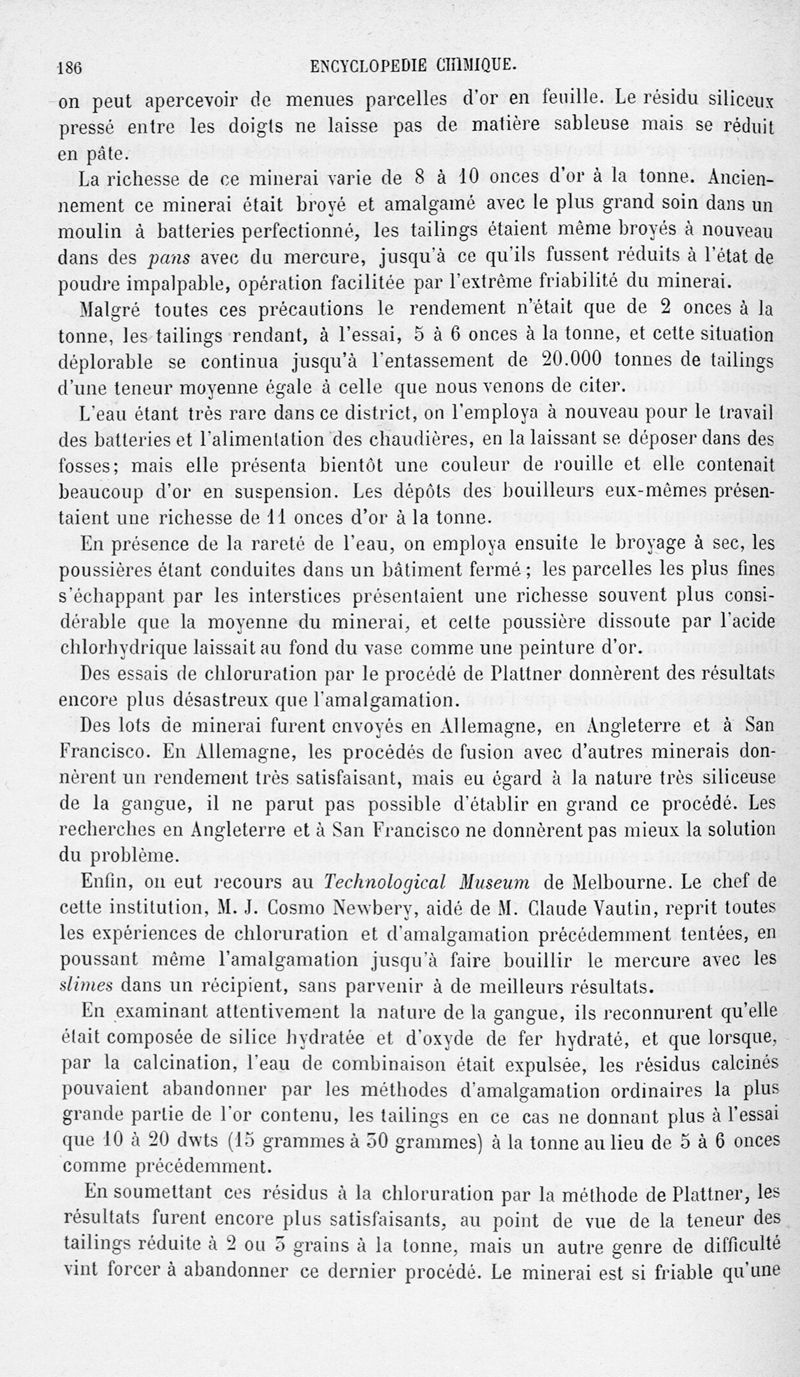 Encyclopédie chimique.Tome V.- Applications de la chimie inorganique. 2eme section : industries chimiques. 2e partie : métallurgie. L'or, par MM. E. Cumenge et Edmond Fuchs.