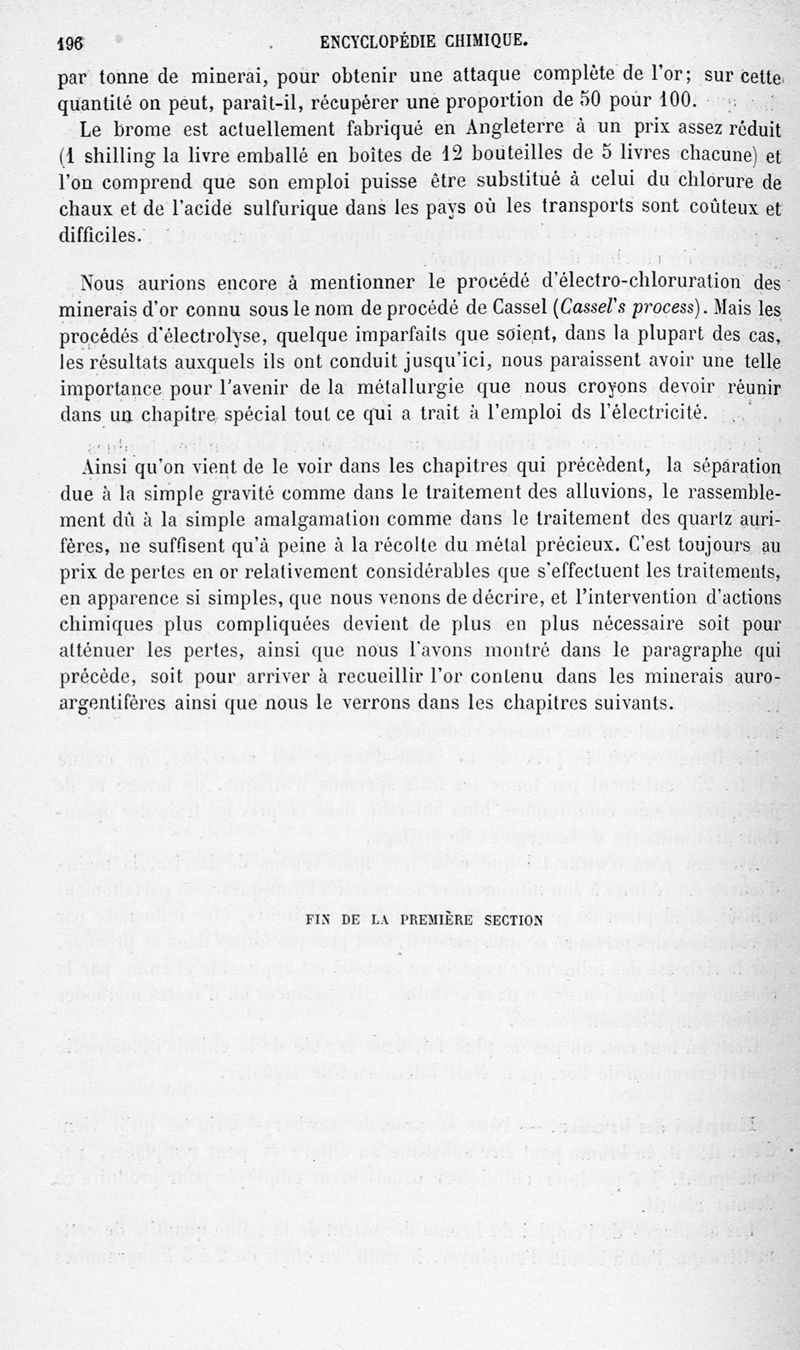 Encyclopédie chimique.Tome V.- Applications de la chimie inorganique. 2eme section : industries chimiques. 2e partie : métallurgie. L'or, par MM. E. Cumenge et Edmond Fuchs.
