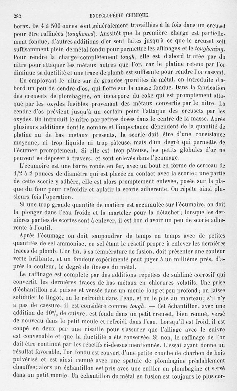 Encyclopédie chimique.Tome V.- Applications de la chimie inorganique. 2eme section : industries chimiques. 2e partie : métallurgie. L'or, par MM. E. Cumenge et Edmond Fuchs.