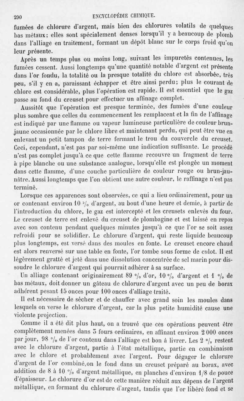 Encyclopédie chimique.Tome V.- Applications de la chimie inorganique. 2eme section : industries chimiques. 2e partie : métallurgie. L'or, par MM. E. Cumenge et Edmond Fuchs.