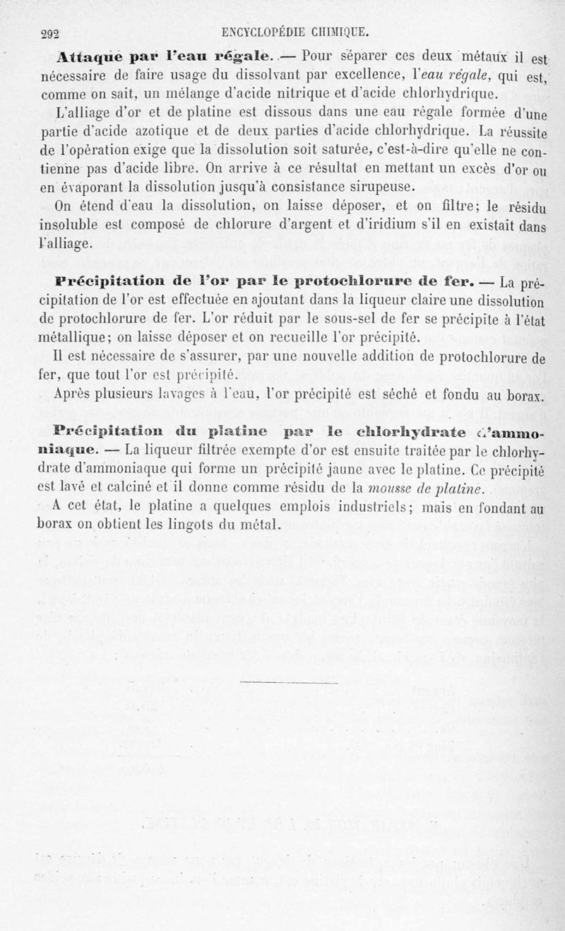 Encyclopédie chimique.Tome V.- Applications de la chimie inorganique. 2eme section : industries chimiques. 2e partie : métallurgie. L'or, par MM. E. Cumenge et Edmond Fuchs.