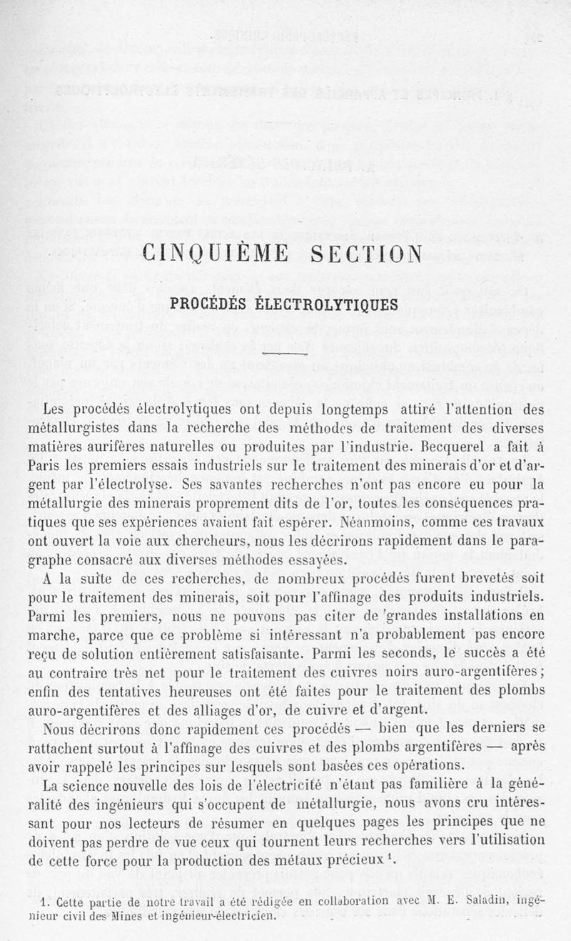 Encyclopédie chimique.Tome V.- Applications de la chimie inorganique. 2eme section : industries chimiques. 2e partie : métallurgie. L'or, par MM. E. Cumenge et Edmond Fuchs.