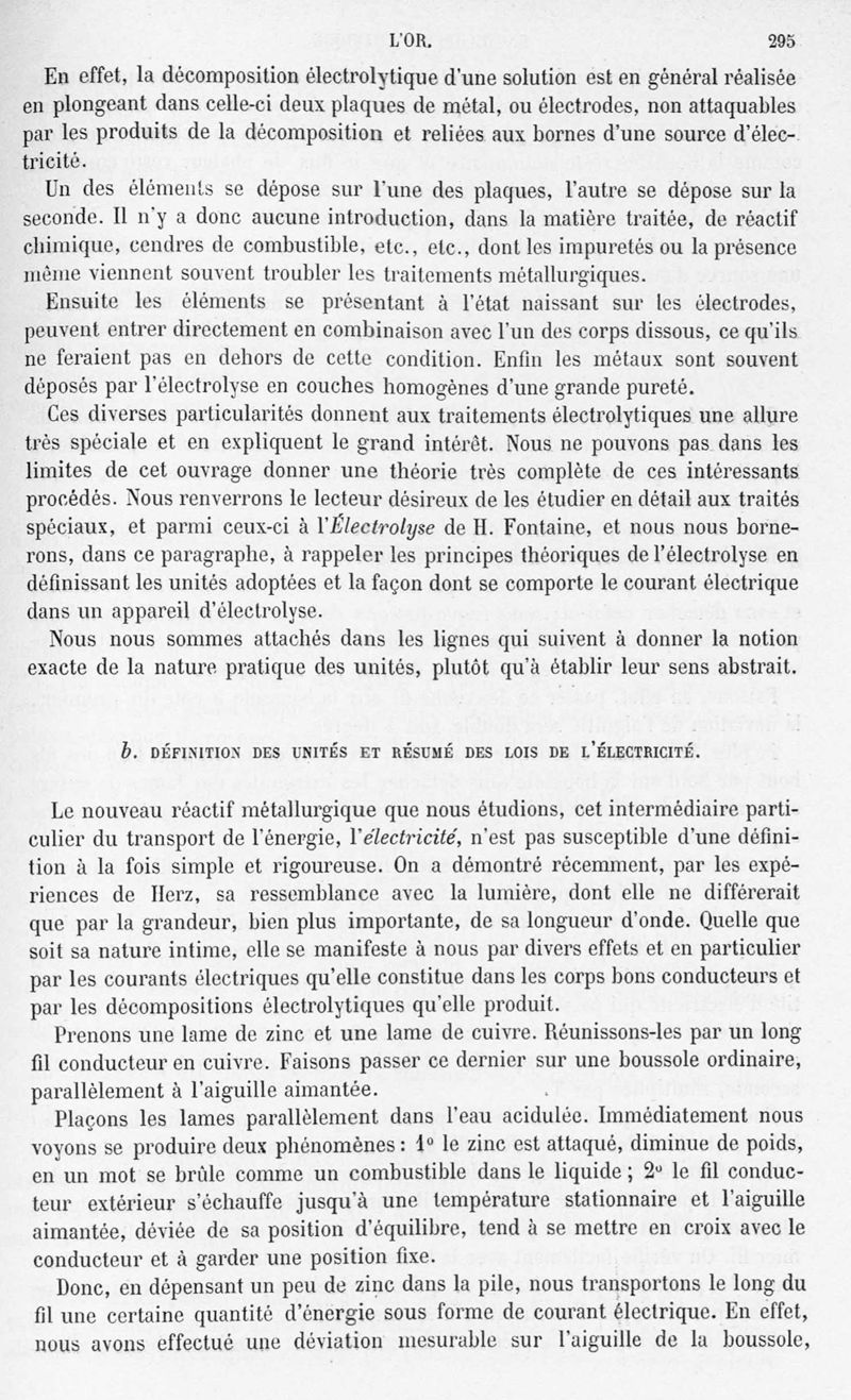Encyclopédie chimique.Tome V.- Applications de la chimie inorganique. 2eme section : industries chimiques. 2e partie : métallurgie. L'or, par MM. E. Cumenge et Edmond Fuchs.