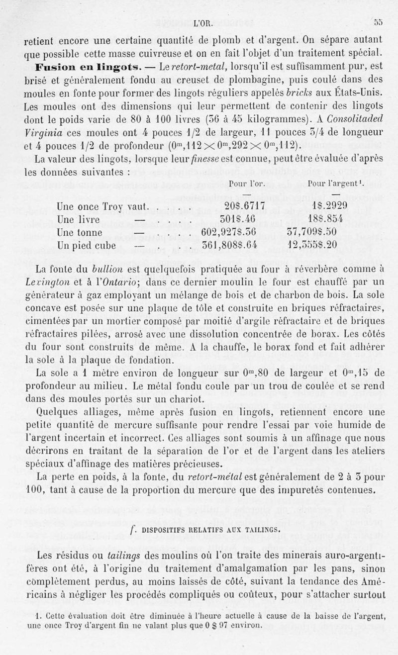 Encyclopédie chimique.Tome V.- Applications de la chimie inorganique. 2eme section : industries chimiques. 2e partie : métallurgie. L'or, par MM. E. Cumenge et Edmond Fuchs.