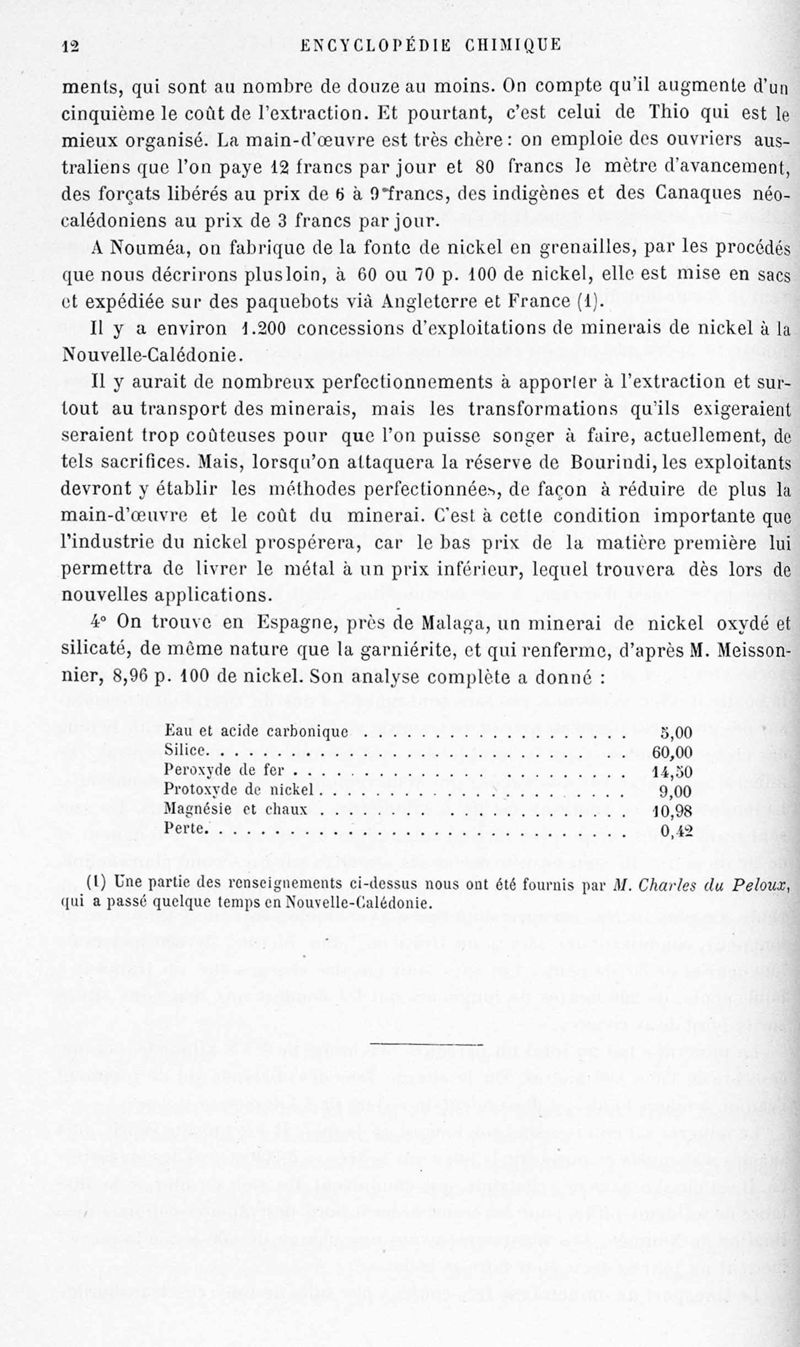 Encyclopédie chimique.Tome V.- Applications de la chimie inorganique. 2eme section : industries chimiques. 2e partie : métallurgie. Nickel et cobalt, par M. A. M. Villon.