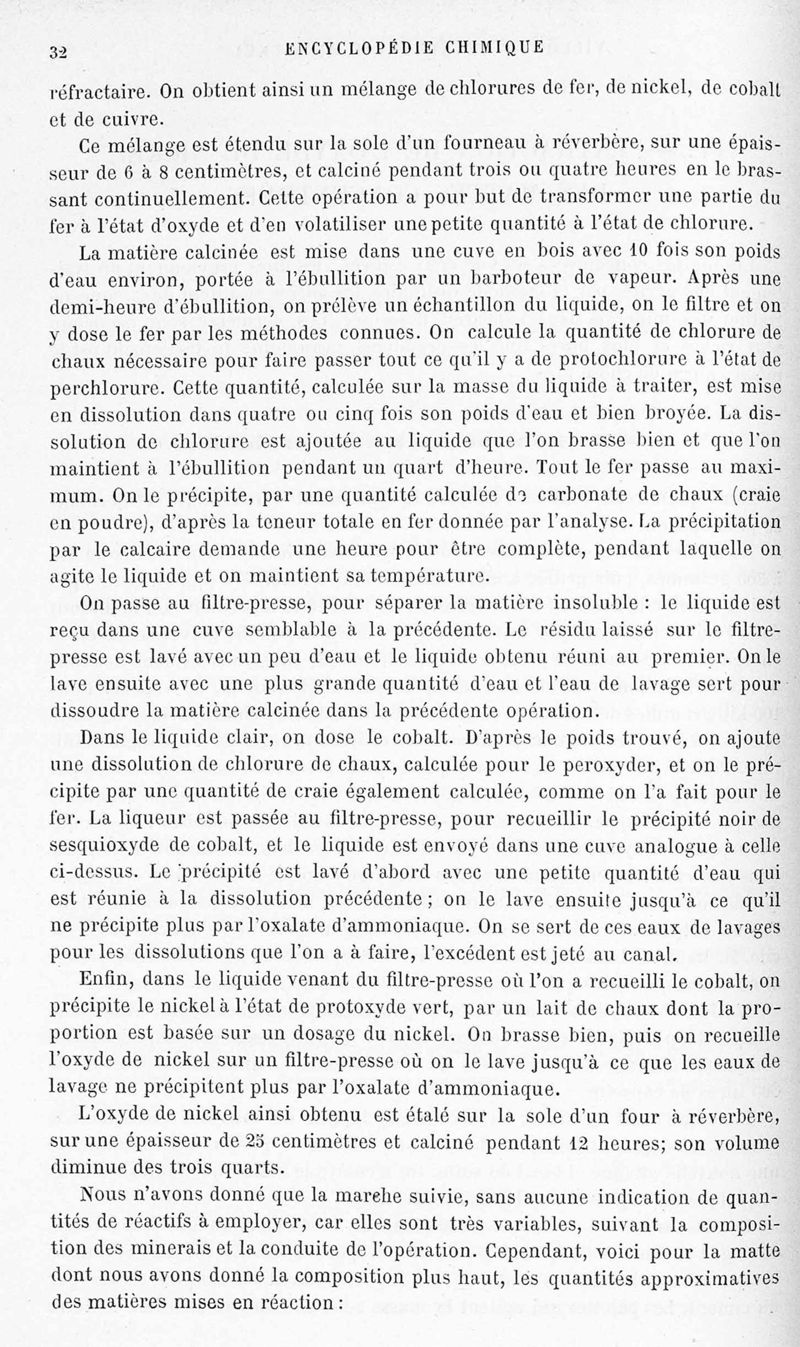 Encyclopédie chimique.Tome V.- Applications de la chimie inorganique. 2eme section : industries chimiques. 2e partie : métallurgie. Nickel et cobalt, par M. A. M. Villon.