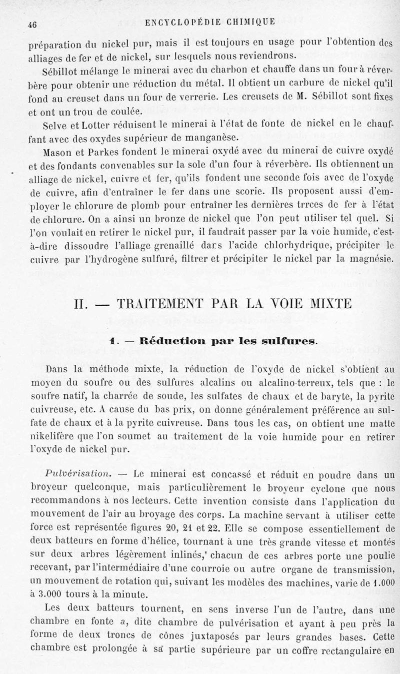 Encyclopédie chimique.Tome V.- Applications de la chimie inorganique. 2eme section : industries chimiques. 2e partie : métallurgie. Nickel et cobalt, par M. A. M. Villon.
