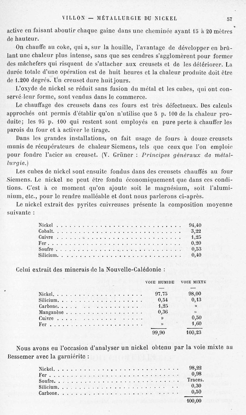 Encyclopédie chimique.Tome V.- Applications de la chimie inorganique. 2eme section : industries chimiques. 2e partie : métallurgie. Nickel et cobalt, par M. A. M. Villon.