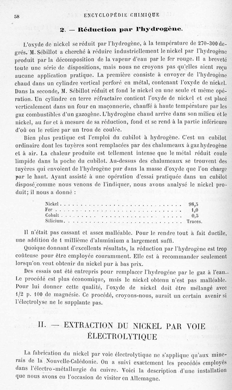 Encyclopédie chimique.Tome V.- Applications de la chimie inorganique. 2eme section : industries chimiques. 2e partie : métallurgie. Nickel et cobalt, par M. A. M. Villon.