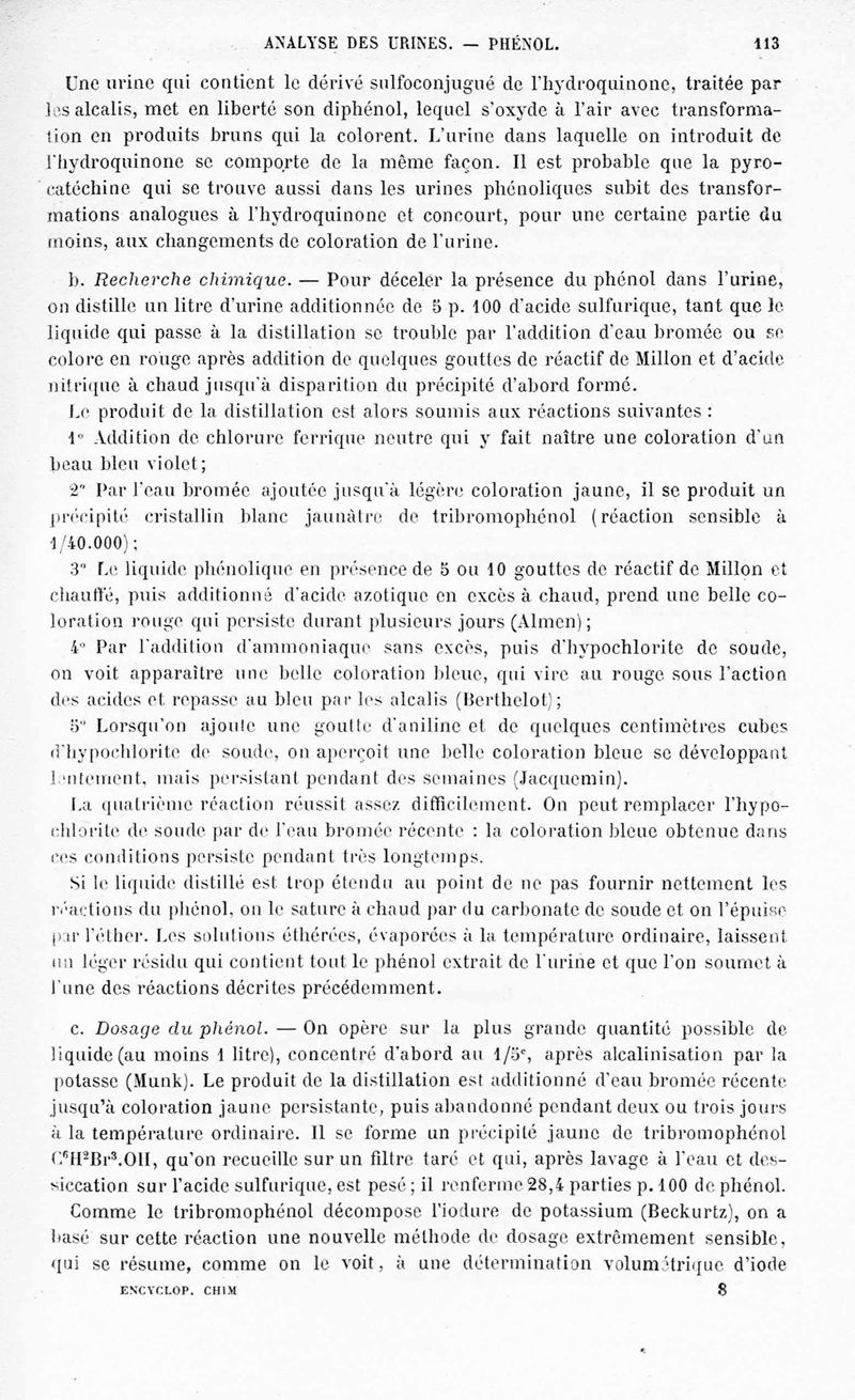 Encyclopédie chimique.Tome IX.- Applications de chimie organique. 2e section : chimie physiologique. Analyse chimique des liquides et des tissus de l'organisme, par les Drs Garnier et Schlagdenhauffen.