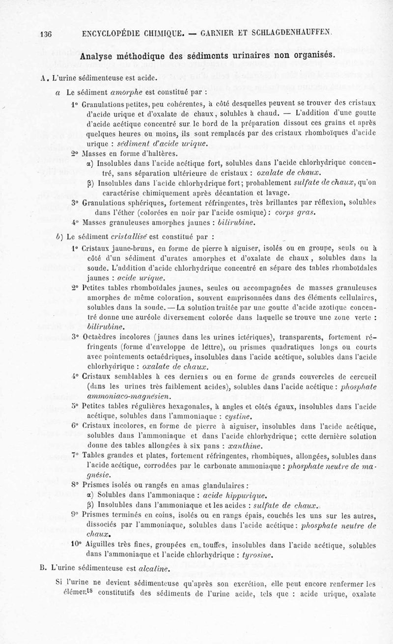 Encyclopédie chimique.Tome IX.- Applications de chimie organique. 2e section : chimie physiologique. Analyse chimique des liquides et des tissus de l'organisme, par les Drs Garnier et Schlagdenhauffen.