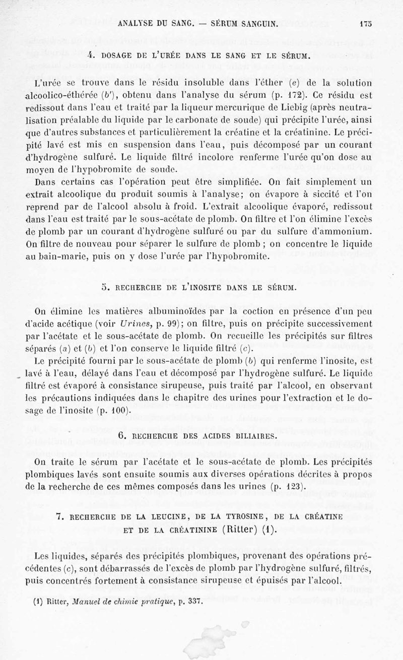 Encyclopédie chimique.Tome IX.- Applications de chimie organique. 2e section : chimie physiologique. Analyse chimique des liquides et des tissus de l'organisme, par les Drs Garnier et Schlagdenhauffen.