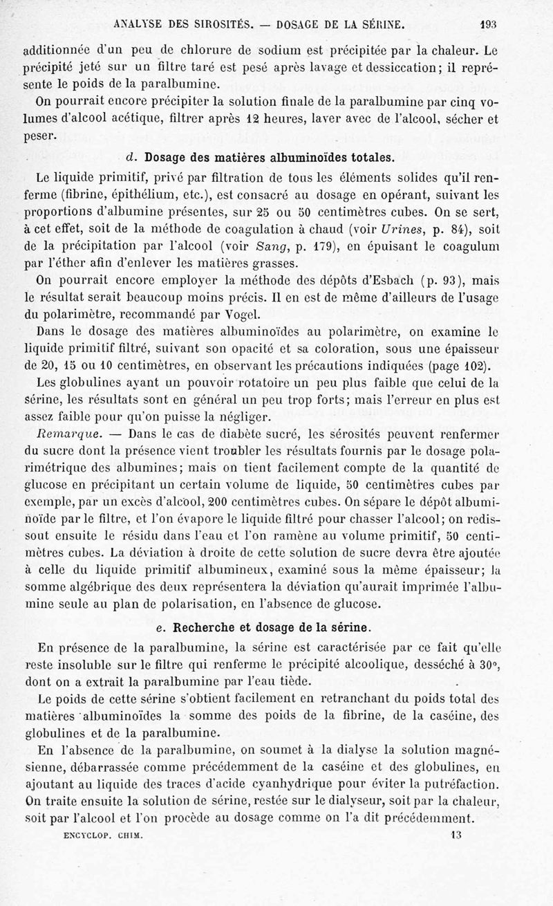 Encyclopédie chimique.Tome IX.- Applications de chimie organique. 2e section : chimie physiologique. Analyse chimique des liquides et des tissus de l'organisme, par les Drs Garnier et Schlagdenhauffen.