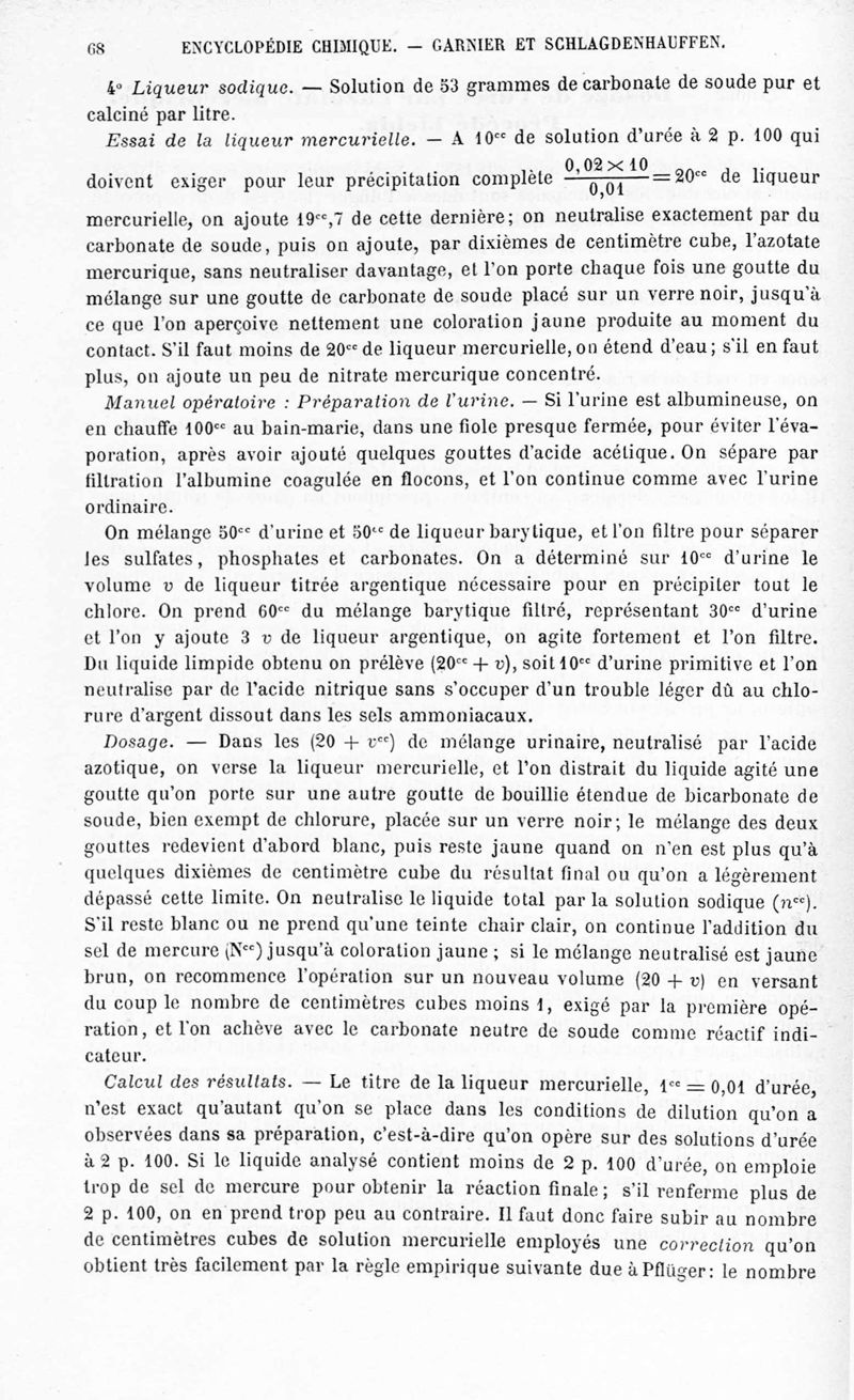 Encyclopédie chimique.Tome IX.- Applications de chimie organique. 2e section : chimie physiologique. Analyse chimique des liquides et des tissus de l'organisme, par les Drs Garnier et Schlagdenhauffen.