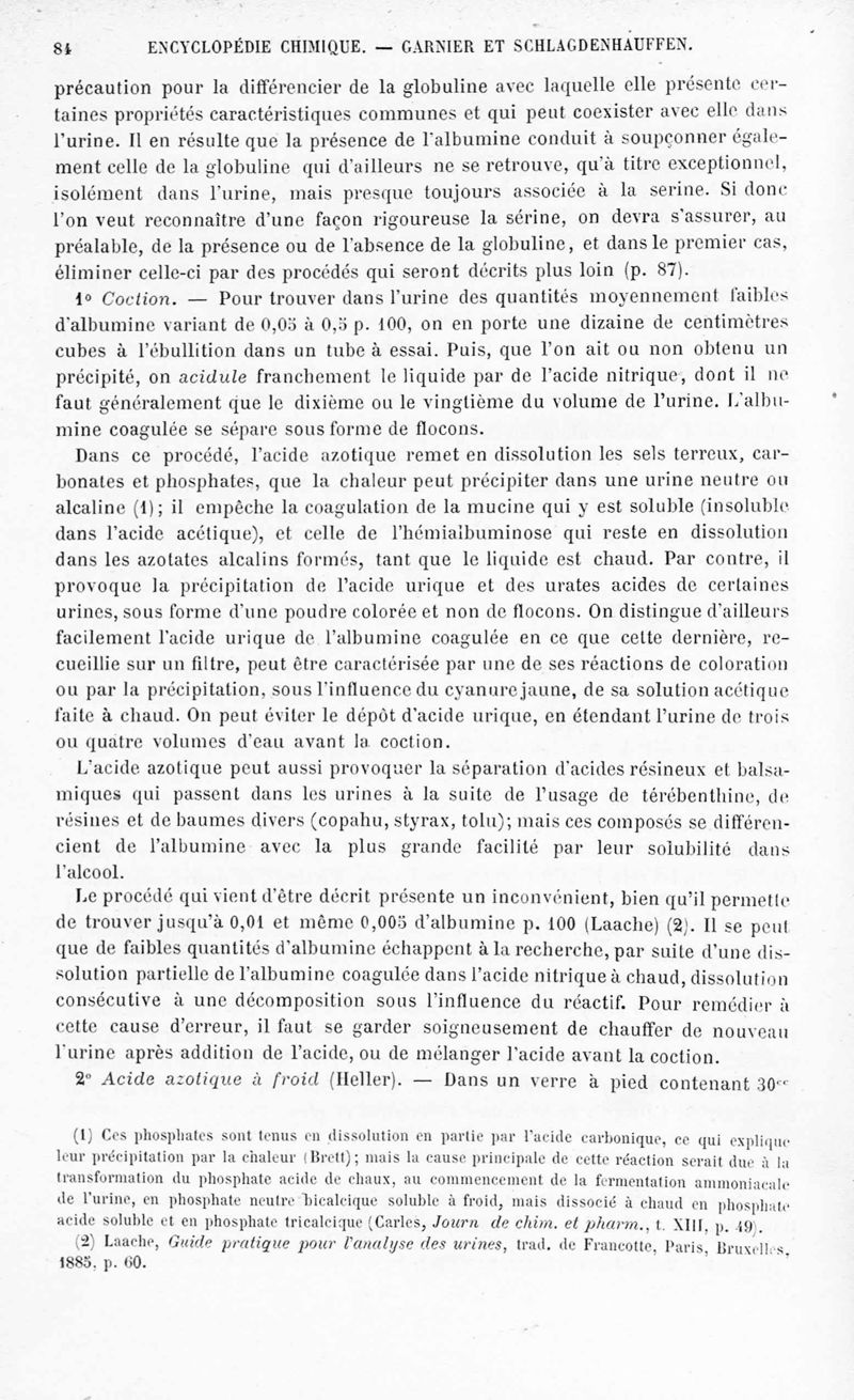 Encyclopédie chimique.Tome IX.- Applications de chimie organique. 2e section : chimie physiologique. Analyse chimique des liquides et des tissus de l'organisme, par les Drs Garnier et Schlagdenhauffen.