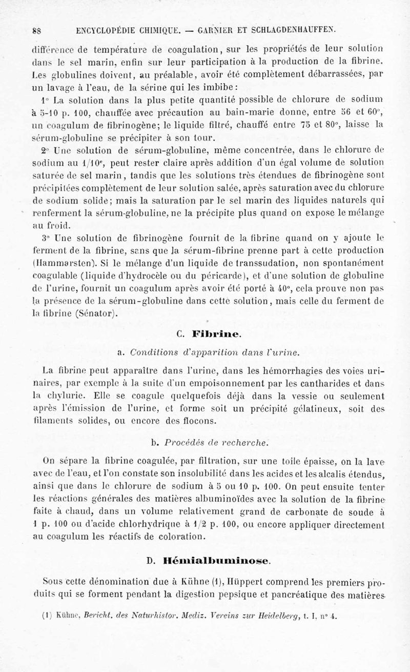 Encyclopédie chimique.Tome IX.- Applications de chimie organique. 2e section : chimie physiologique. Analyse chimique des liquides et des tissus de l'organisme, par les Drs Garnier et Schlagdenhauffen.
