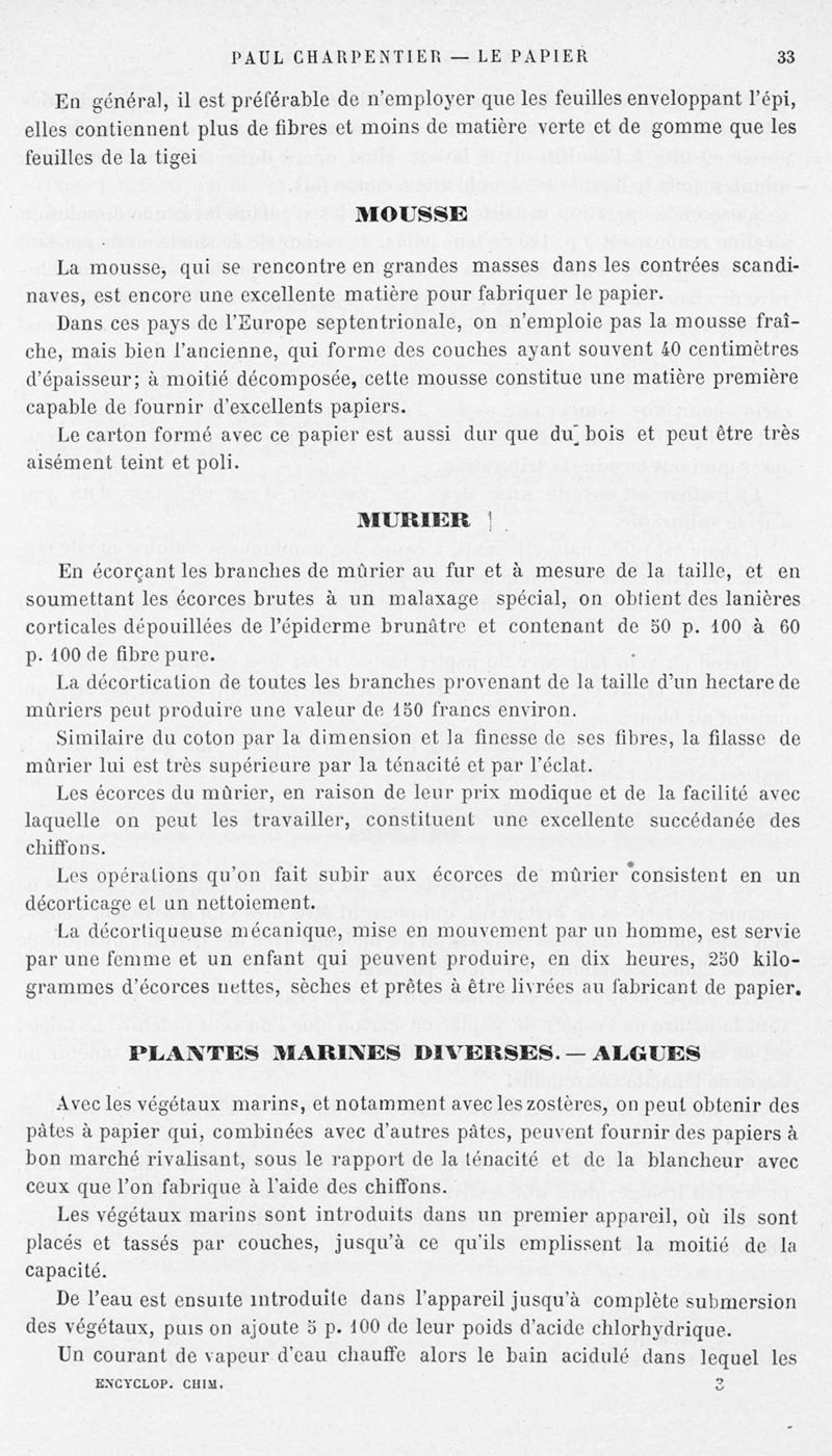 Encyclopédie chimique.Tome X.- Applications de chimie organique. Le papier, par M. Paul Charpentier.