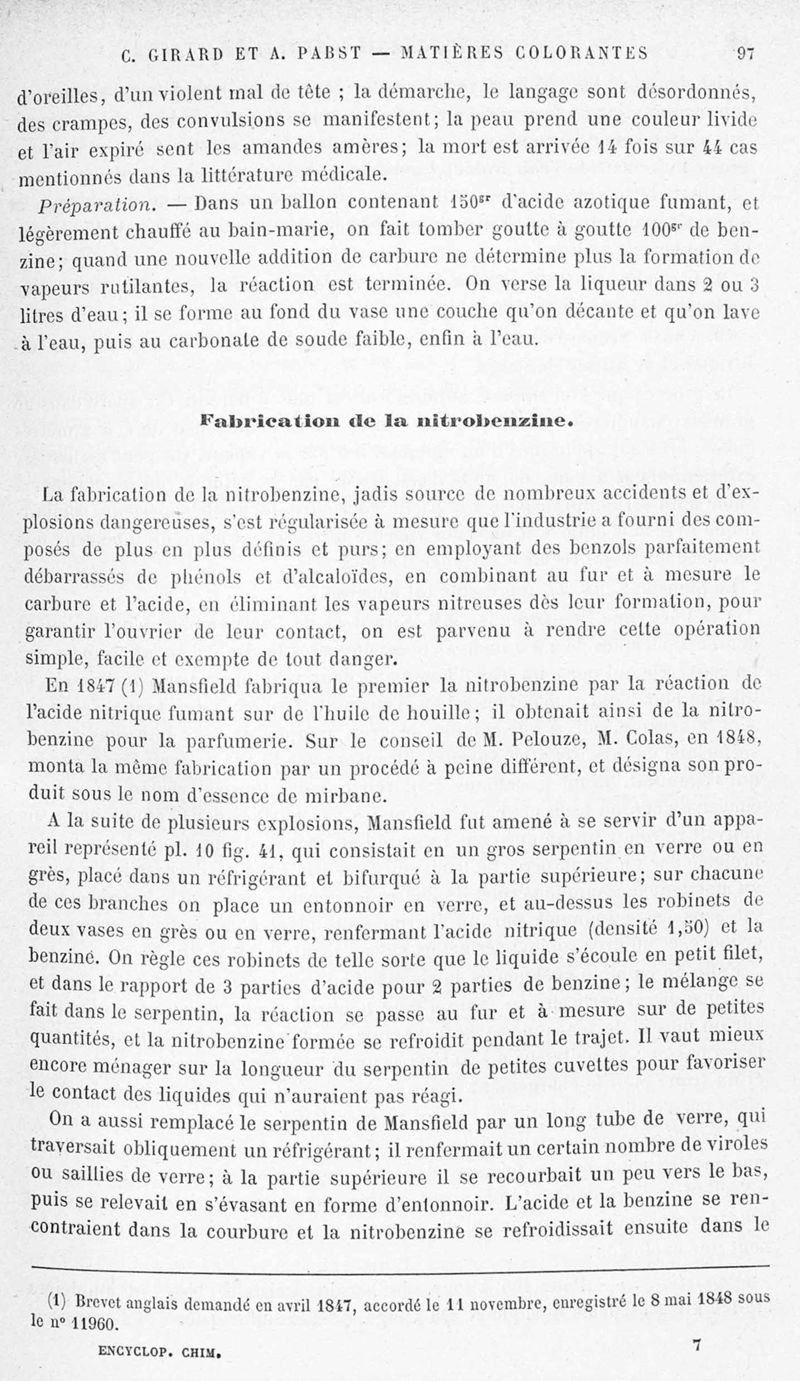 Encyclopédie chimique.Tome X.- Applications de chimie organique. Matière colorantes : série aromatique et ses applications industrielles, par MM. Ch. Girard et A. Pabst.