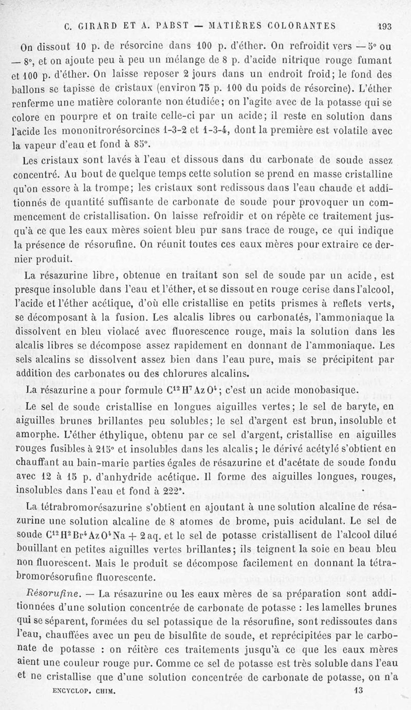 Encyclopédie chimique.Tome X.- Applications de chimie organique. Matière colorantes : série aromatique et ses applications industrielles, par MM. Ch. Girard et A. Pabst.