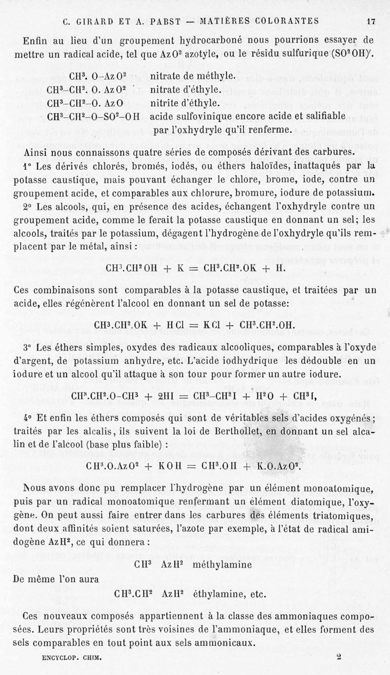 Encyclopédie chimique.Tome X.- Applications de chimie organique. Matière colorantes : série aromatique et ses applications industrielles, par MM. Ch. Girard et A. Pabst.