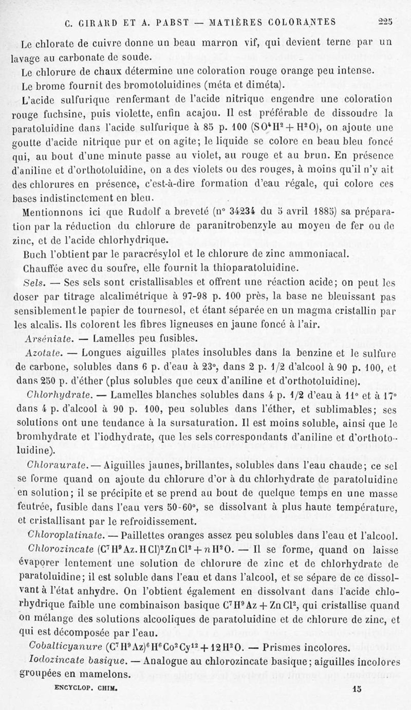 Encyclopédie chimique.Tome X.- Applications de chimie organique. Matière colorantes : série aromatique et ses applications industrielles, par MM. Ch. Girard et A. Pabst.